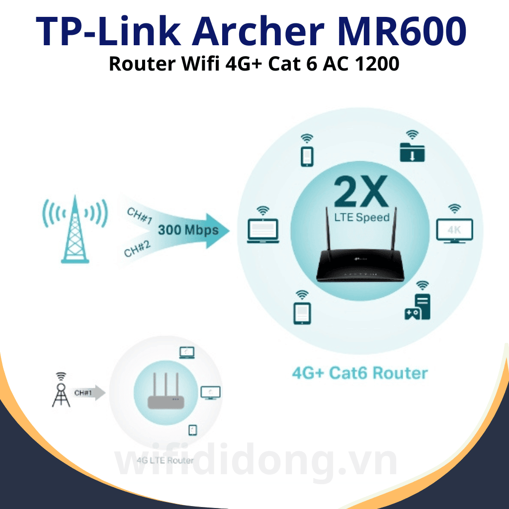 Router Wifi 4G+ Cat 6 AC 1200 TP-Link Archer MR600 là sản phẩm đỉnh cao từ TP-Link – thương hiệu nổi tiếng toàn cầu về giải pháp mạng. Với công nghệ 4G+ Cat 6 hiện đại, tốc độ băng thông lên đến 1200Mbps và khả năng phủ sóng mạnh mẽ, MR600 chính là giải pháp lý tưởng để đảm bảo kết nối mạng nhanh chóng, ổn định cho cả gia đình hay văn phòng nhỏ. Truy cập ngay Wifididong.vn để sở hữu thiết bị tiên tiến này với giá tốt nhất!